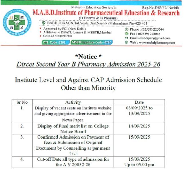 Approved by PCI, AICTE, DTE & Govt. of Maharashtra Affiliated to MSBTE, Mumbai & DBATU, Lonere, Raigad